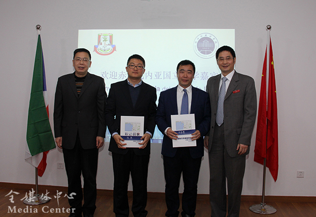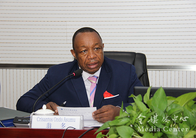 洪岗对赤道几内亚国立大学客人的远道而来表示欢迎,对孔子学院2017年所取得的长足发展表示祝贺,对赤道几内亚国立大学给予孔子学院工作的支持表示感谢。洪岗表示,不久前召开的第十二届孔子学院大会的主题是“深化合作,创新发展,为构建人类命运共同体贡献力量”,而这也正是赤道几内亚国立大学孔子学院的发展使命,期待两校继续保持沟通、深化合作、不断提升办学水平,扩大社会影响力,促进中赤几两国间的民心相通。