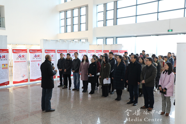 随后,大家一起观看了廉政书画作品展及廉政警示教育展。相关作品展由纪检办、团委和艺术学院布展,展出了高校廉政警示教育作品12幅,及来自各学院的书画作品60余幅,力求使廉政文化浸润师生心灵,营造风清气正的氛围。