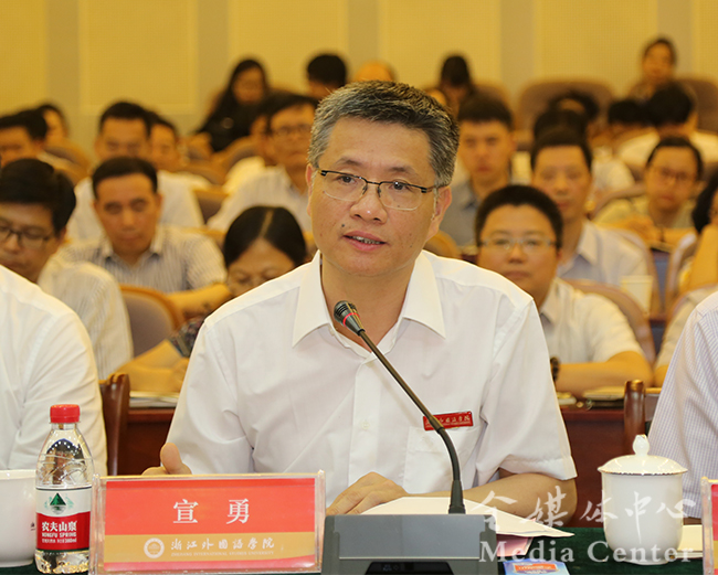 第二项议程,宣勇在表态发言中,对专家组的辛勤工作表示衷心的感谢。宣勇表示,学校将根据专家组的反馈意见,继续贯彻落实“以评促建、以评促改、以评促管、重在建设”的指导方针,继续做好下一阶段的工作。在教育部、省委教育工委、省教育厅的指导下,学校将认真学习、深刻领会专家组反馈的意见和建议,把思想和行动统一到专家组反馈的意见和建议上来,全面系统地梳理存在的问题,深入剖析产生问题的原因;在消化吸收专家组反馈的意见建议的基础上,认真制定整改方案,明确整改目标、整改内容、责任单位、责任人员和整改时限;把学校评建过程中采取的有效做法、形成的优良作风、焕发的精神面貌坚持下去,真正将其转化为保障本科教学质量的长效机制,推动本科教学工作再上新的台阶,为浙江经济社会发展作出新的更大贡献。