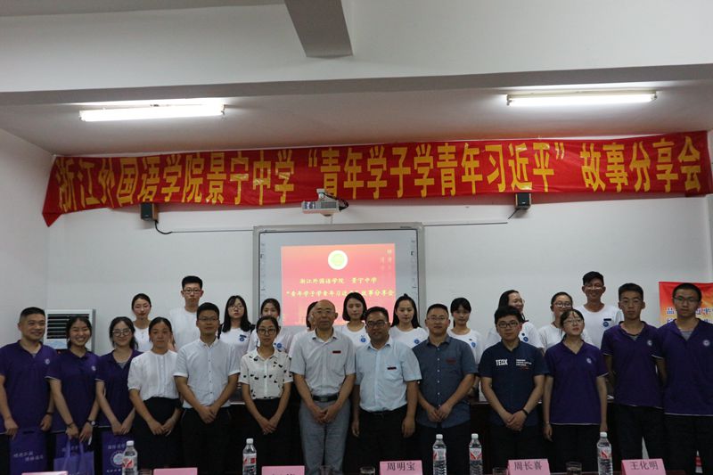 校团委、商学院相关负责人,追寻习近平总书记浙江足迹暑期社会实践队全体师生、景宁中学100余名高二学生参加分享会。