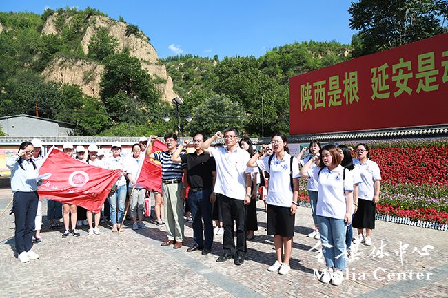 ——重温入党誓词。在梁家河,“青年学子学青年习近平”学习教育实践师生团队临时党支部16位党员重温入党誓词,再次接受党性教育的深刻洗礼,坚定理想信念。