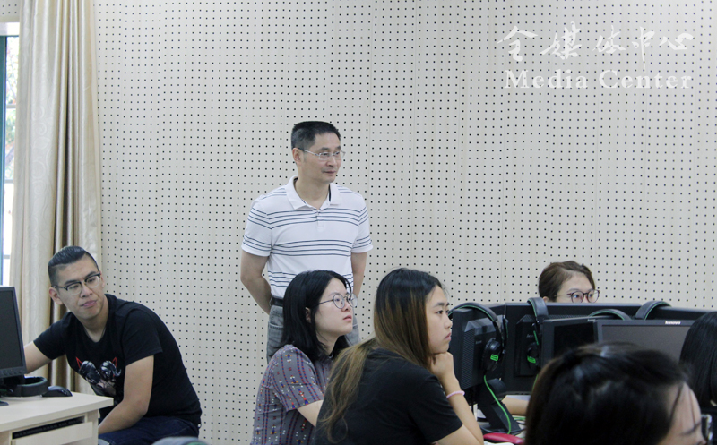 同一时间,在望院D110教室,洪岗聆听了英文学院外教Aaron为15英语4班学生讲授的《报刊选读》课程。在听课过程中,洪岗详细地作了听课记录,并对教师的教风、学生的学风和课堂纪律等进行了全面检阅。对任课老师认真的教学态度、饱满的工作热情、良好的教学水平和同学们新学期全新的精神面貌给予了肯定。