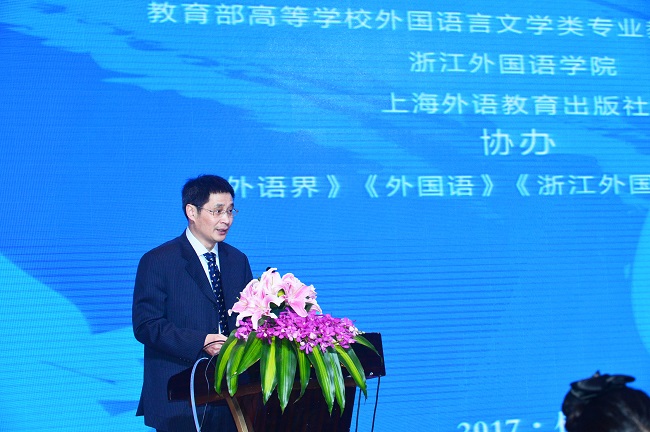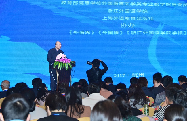 3月17日,由开云官网和教育部高等学校外国语言文学类专业教学指导委员会(以下简称外指委)、上海外语教育出版社联合举办的第十一届全国英语专业院长/系主任高级论坛在杭州隆重举行。本届论坛的主议题是“《国标》指引下的英语专业课程建设和质量提升”,来自全国各地的700多位外国语学院院长、专业负责人齐聚G20之后的钱塘江畔,共同探讨英语专业教学改革的核心问题与发展方向。校长洪岗出席论坛。校党委副书记赵伐主持论坛开幕式。