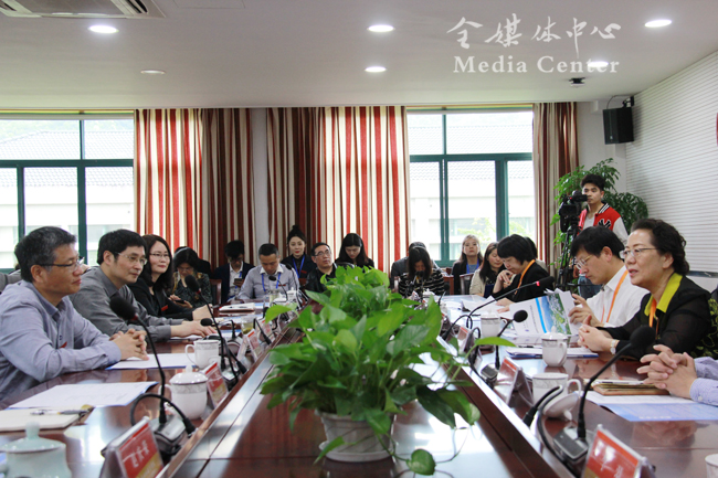 会议第二阶段,洪岗向专家组介绍了学校的历史沿革、转型发展、特色彰显等三方面内容。分别从办学定位和人才培养目标、学科专业建设、国际交流合作、人才培养模式改革等方面着重介绍了学校在改制更名后的转型发展;从学生语言水平不断提升、学生应用创新能力日益提高、学生就业形势良好、生源质量明显提高等方面介绍了学校改制转型以来日益显现的人才培养特色。同时,对照教育部本科教学工作合格评估体系及关键观测点,洪岗向专家组作了教学状态数据补充说明。