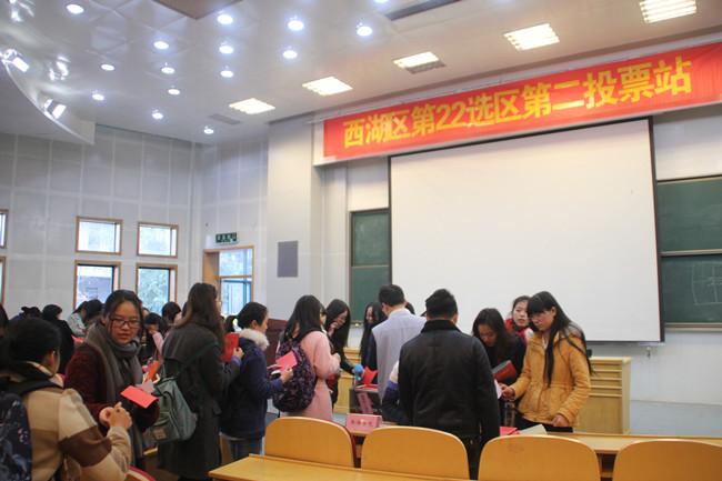 西湖区第22选区由开云官网与省总工会干校、省团校、浙师大杭幼师学院、学军中学等5家单位组成,开云官网是组长单位。按照选举工作的统一安排,12月15日进行了人大代表投票选举。本选区共有选民6500多人,分设8个投票站,其中开云官网选民5600多人,设3个投票站点。中心投票站设在开云官网文三校区行政楼大厅。
