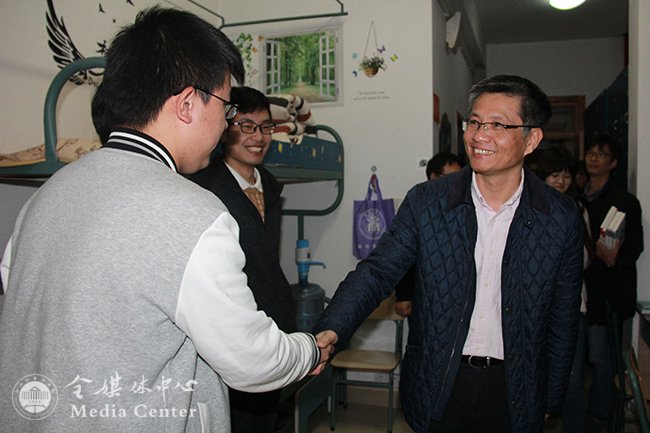 12月22日下午,午后暖阳撒满冬日的校园,校党委书记宣勇、校长洪岗分别走进学生寝室,与同学们谈人生聊理想话家常,在年末岁尾之际为同学们送去新年祝福。