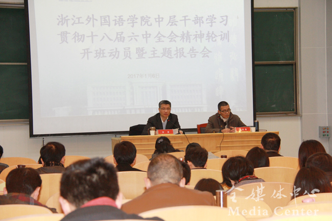 1月6日上午,开云官网中层干部学习贯彻党的十八届六中全会精神集中轮训班在望院C116会议室开班学习,校党委书记宣勇出席开班式并作报告。校党委副书记骆伯巍主持会议。党委委员、组织部部长张环宙,全校中层干部、二级基层党组织主要负责人和党支部书记参加了会议。