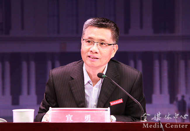 宣勇号召全校师生,在迎评工作进入倒计时阶段,大家须在全省高校思想政治工作会议精神的指引下,落实立德树人根本任务,推进学校特色发展,攻坚克难共同努力打赢这场战役,以优异成绩报答社会各界对学校的关心和支持。