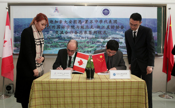 洪岗对魁北克-浙江友好协会和安图恩•蒙苏中学积极搭建平台,促进两地教育交流表示赞赏。他说,文化交流是一种国际趋势,需要主动作为。借用加拿大知名作家马尔科姆•格拉德威尔有关小举动引发大变革的观点,洪岗表示浙外愿与魁北克-浙江友好协会、安图恩•蒙苏中学积极沟通,加强合作,推动浙江与魁北克的教育交流。