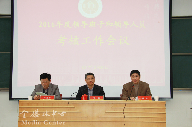 校党委书记宣勇代表学校党政领导班子作2016年度工作总结报告,并对过去一年学校干部选拔任用工作的情况作了专门报告。
