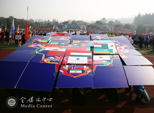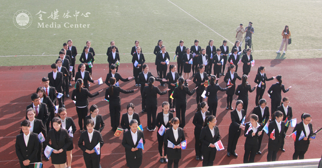 国际学院代表队展示各国国旗