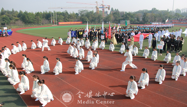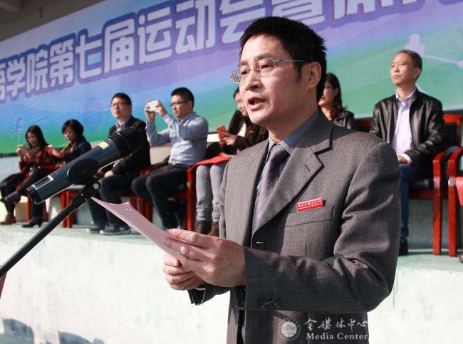 校长洪岗致开幕词。他说,体育工作是学校教育事业的有机组成部分,在提高师生身体素质,繁荣特色校园文化方面发挥着巨大的作用。近年来,学校努力打造民族传统体育文化特色,积极开设新兴体育项目,取得了不俗的成绩。一年一度的运动会暨体育文化节已经成为学校品牌性的群众体育活动,深受师生欢迎。洪岗希望,全体运动员赛出成绩、赛出水平,赛出新风尚;全体裁判员公平、公正、公开裁决;各学院、部门认真组织好观众,做好后勤保障工作;全校师生员工以这次运动会暨体育文化节为契机,能够“每天锻炼一小时,幸福健康一辈子”,以健康的体魄和饱满的热情投入到学校各项事业的建设中去。并预祝本届运动会暨体育文化节取得圆满成功。