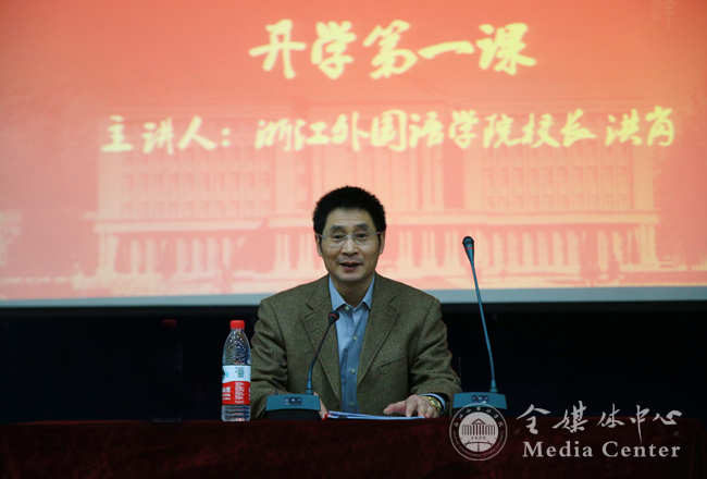 最后,洪岗还向同学们提出了三点学习建议:要善于向不同的人学习;要向自己学习,不断地自我反省;要学而时习之,以实践去检验所学的知识。他相信,经过大学四年的浸润,同学们一定会成为对人生有追求,对世界有关爱,对生活有热情的浙外学子。