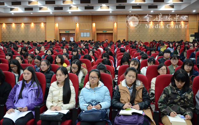 11月8日下午,在文三路校区的小礼堂里,校长洪岗为2016级新生讲授了生动精彩的大学第一课。