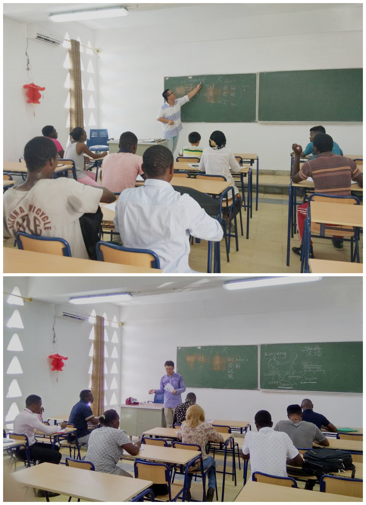 (周健民、冯烁两位老师在孔子学院巴塔校区教学点上课)
