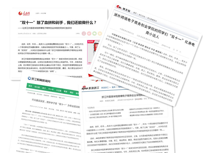 日前,人民网、中国网、中国教育在线、浙江在线、新浪网、钱江潮等媒体分别以“‘双十一’除了血拼和剁手,我们还能做什么?——让kaiyun开云官方跨境电子商务创业学院的同学们告诉你”“不只是买买买,浙外学子变‘双十一’为专业实训周”“浙外跨境电子商务创业学院的同学们‘双十一’化身电商小达人”“kaiyun开云官方跨境电子商务创业学院的‘双十一’”等为题,报道了开云官网跨境电商创业学院变“双十一”为学生专业实训周的情况。