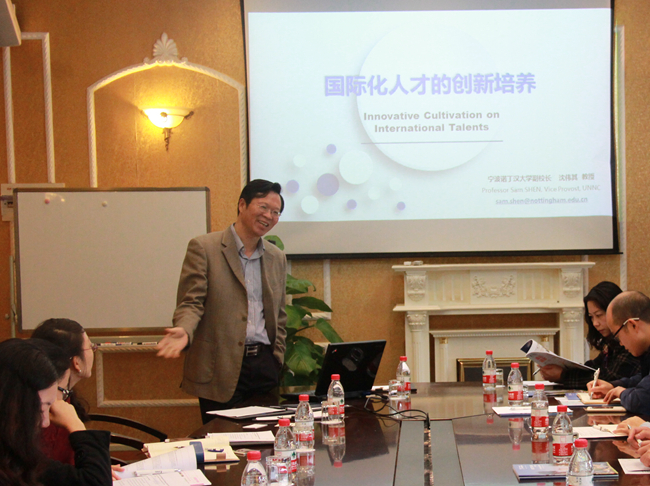 根据学校2016年中层领导干部国际化能力提升培训方案安排,11月17日,校长洪岗带队,校党委委员、组织部长张环宙及各单位相关负责人赴宁波诺丁汉大学学习国际化办学理念和经验。
