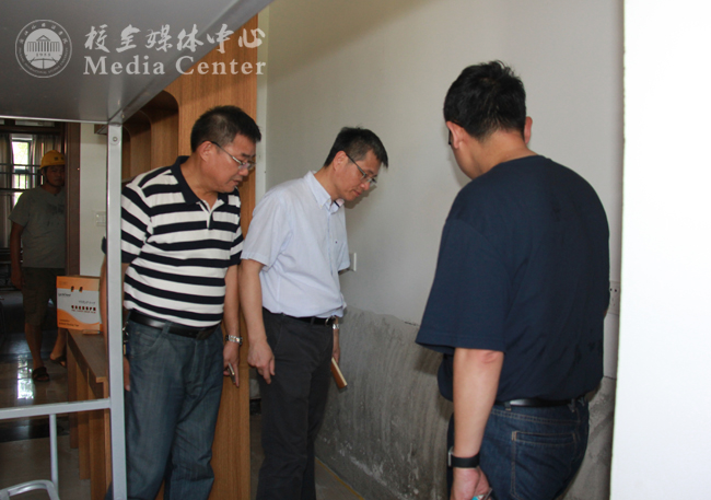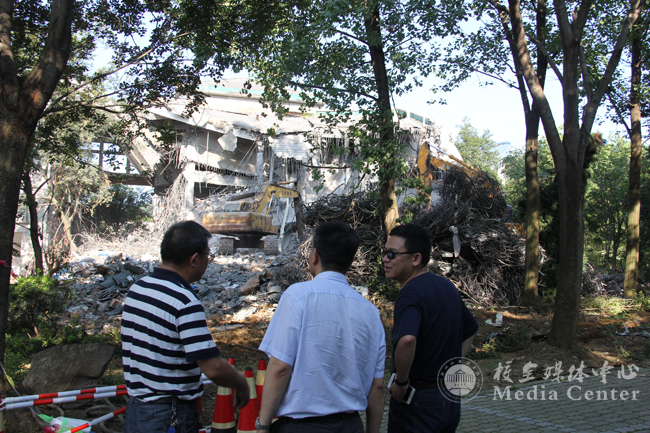 随后,宣勇又逐一仔细察看了正在拆建的原5号、6号教学楼以及学生寝室、学生食堂、变电站和校园主干道等拆建改建项目。宣勇与施工现场的同志一一握手,亲切慰问,向广大冒着高温酷暑一直奋战在施工一线的干部职工表示感谢。每到一处,宣勇都向有关负责人详细询问工程的施工情况、存在的困难和进展的预期,仔细听取汇报。在现场,宣勇还就有关问题和困难与大家进行探讨和商议,并当场提出了解决的思路和办法。宣勇指出,在建多个项目面临任务重困难多工期紧等多重难题,学校将积极整合各方力量,协同配合,大家共同努力,在保证质量、安全施工的前提下,务必在新学期开学前完成食堂、宿舍等相关项目的改造。在考察食堂改造项目时,宣勇还嘱咐学校有关部门负责人,食堂改造除了要满足学生群体日益增长的多元需求外,更要着重考虑食堂要体现开云官网集合多语种教学的校园文化特点,体现国际化办学特征,让食堂文化与学校教学文化一样成为富有浙外特色的一道亮丽风景线。