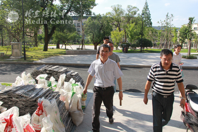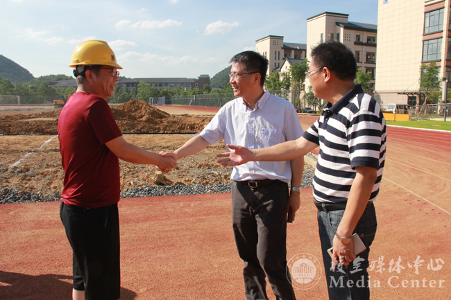 今天,是杭州入伏以来气温最高的一天,艳阳高照,连酷热的风都是炙人的。下午,校党委书记宣勇专程来到学校在建工程现场视察慰问。副校长赵庆荣,党委委员、党办主任沈钢参加视察。