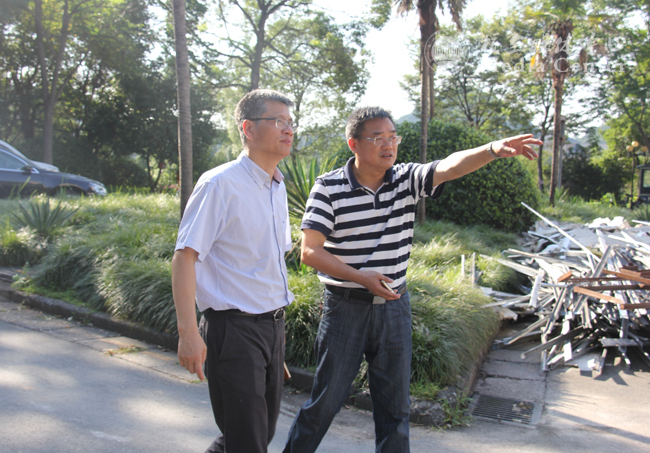 宣勇首先察看了杭外校园草坪建设工程和学生寝室修缮工程现场。宣勇仔细察看了现场方方面面,与施工和管理人员进行了深入交流,并表示亲切慰问。宣书记特别强调,建设工程要高度重视质量要求,必须以保证学生使用安全为第一要素、第一要求。工程建设要按照进度流程,合理安排,严格管理,科学施工,保质保量完成。
