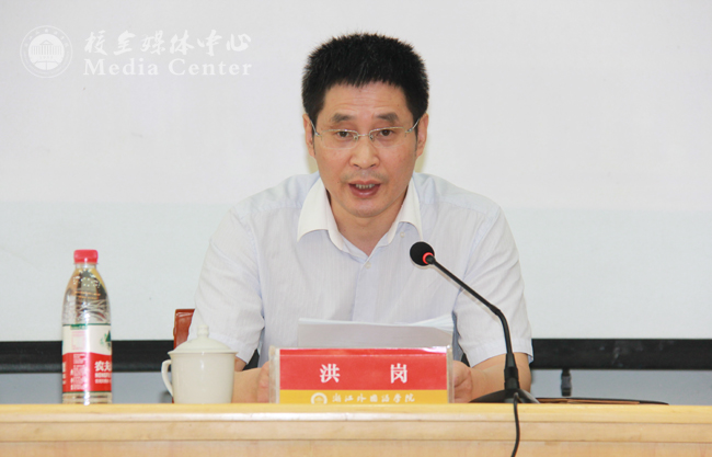 对照年初的工作要点,洪岗围绕深化习近平总书记系列重要讲话精神学习教育;切实加强和改进意识形态工作;完善立德树人根本任务的落实机制;凸显文化校园建设的育人功能;制定实施‘十三五’规划;聚焦‘大外语’加强特色专业建设;凝练学科标志性特色;进一步提升教育国际化水平;推进社会服务工作;大力推进改革创新;提高办学设施条件保障水平;落实全面从严治党等方面部署了新学期工作。