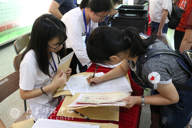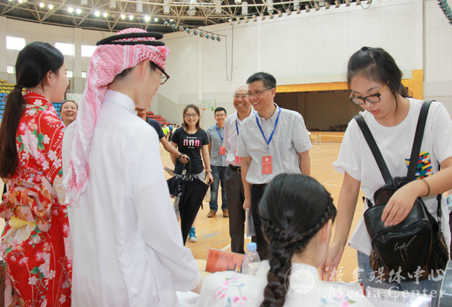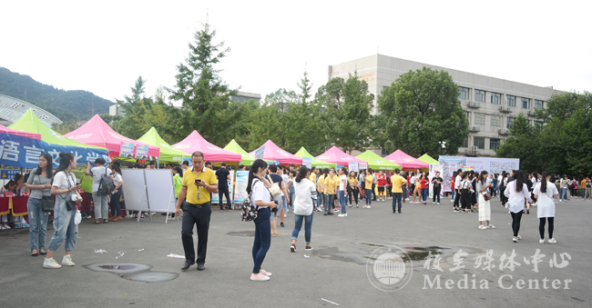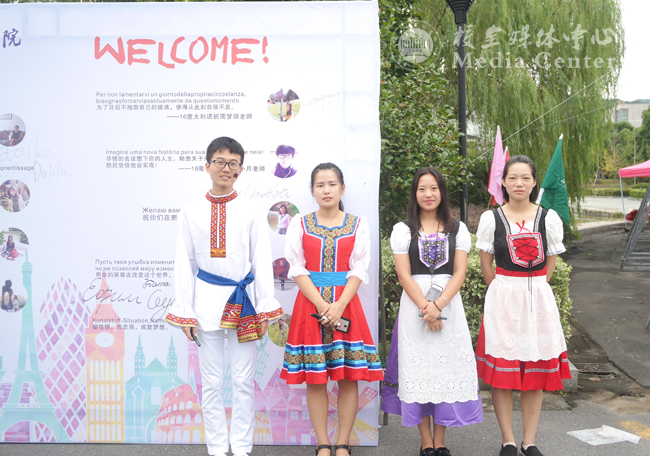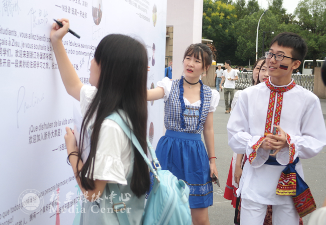 各学院都拿出最饱满的热情、用独具亮点的迎新服务欢迎新生。英文学院准备了“拍立得”,记录新生与学校的第一次合影;东语学院、西语学院、中文学院的志愿者们身着各具特色的民族服饰向新生们展示着学科专业的特点;商学院的迎新工作则体现了“点单服务”,新生可以选择自己最“中意”的志愿者做引导;教育学院设立了党员先锋岗,为新生解决难题;科技学院为新生准备了签名墙,对同学们进行第一次点到;艺术学院的志愿者们则在报到处演奏起了欢快的乐曲……