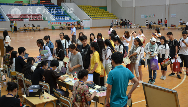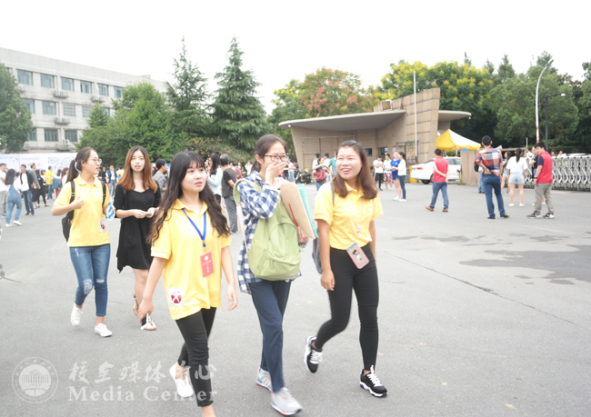 校党委书记宣勇、副书记赵伐,小和山高教园区管委会办公室主任陈雷在相关部门负责人的陪同下,来到行健馆新生报到注册处逐一查看各点位,询问各环节进展,详细了解新生报到情况。