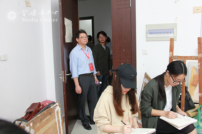 巡查组专家在工作人员的陪同下先后实地考察了望院、润院、品院、追梦堂等办公、教学、实验和活动场所,察看了各学院文化体验室和文科实验中心。