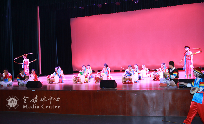 随后,专家们来到追梦堂观看朝鲜语专业社团的“四物乐”表演,赞扬了同学们原汁原味的精彩演出。表演结束后,专家们与社团的同学亲切交谈。其中一位同学表示,自己是出于对朝鲜民族文化的喜爱加入社团的,在学习和活动中了解了许多朝鲜民族文化,非常感谢学校能提供这样一个环境让他做自己喜欢的事情。谈话间,专家还兴致盎然地跟同学们学起了韩语,现场一片欢声笑语。
