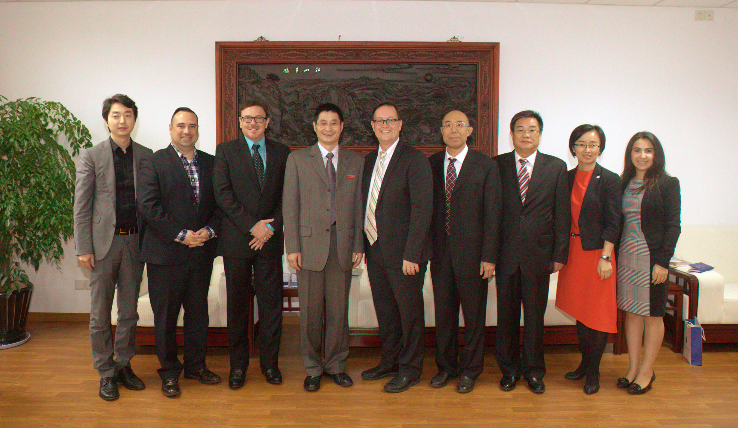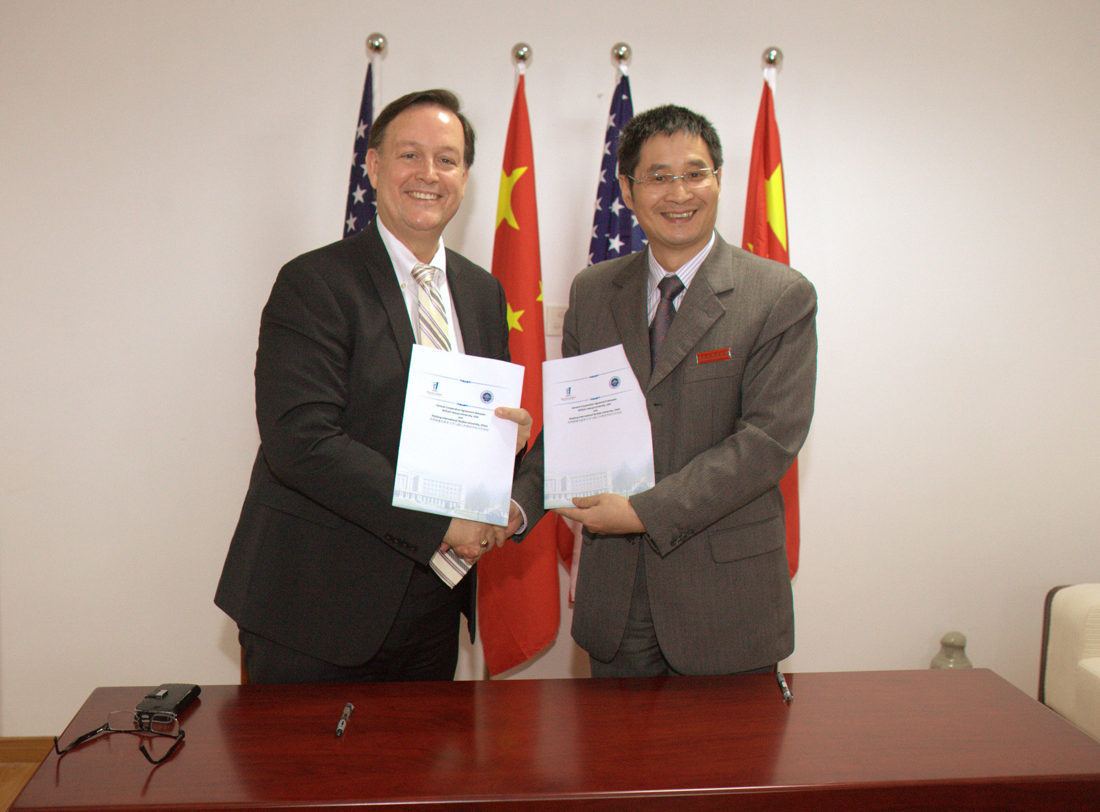 10月28日,校长洪岗会见了美国威廉·杰赛普大学校长杰克·约翰逊、教务长丹尼尔·杰姆逊一行,并签署合作协议。