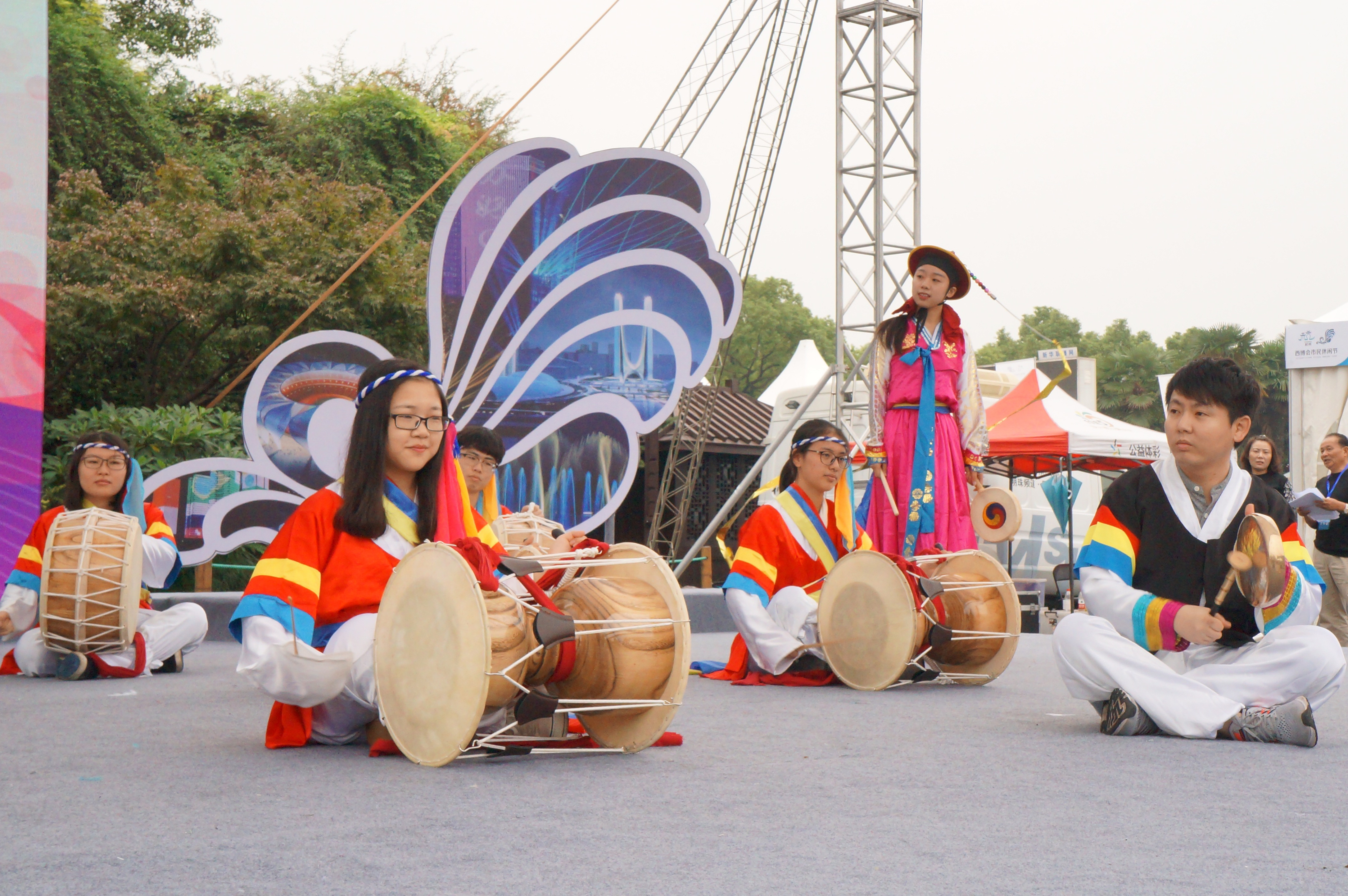 近日,受杭州韩国商会邀请,开云官网东语学院朝鲜语专业社团“韩韵风物派”前往第18届西博会市民休闲节的现场进行演出。