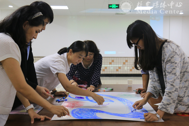 欢迎会上,新进教职工们分组用画笔将他们对浙外的印象、对未来在浙外生活的展望,以画作形式表达出来。老师们纷纷表示,来到浙外感受到了家的温暖,希望能够在这里发挥所长、安教乐道,为学校的发展贡献自己的智慧和力量。