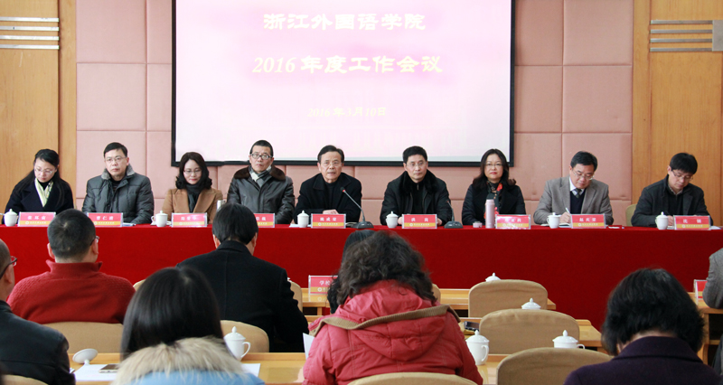 洪岗着重对2016年度工作作了全面部署。洪岗强调,2016年是“十三五”发展开局之年,也是全面深化综合改革、进一步彰显特色提升质量的关键之年。做好今年的工作,要重点抓好五个方面的工作:一要强化理论武装,提升落实立德树人根本任务能力。深化习近平总书记系列重要讲话精神学习教育;切实加强和改进意识形态工作;完善立德树人根本任务的落实机制;凸显文化校园建设的育人功能。二要进一步彰显办学特色,厚植学科专业优势。制定实施“十三五”规划;聚焦“大外语”加强特色专业建设;凝练学科标志性特色;以启动国际化特色高校建设为抓手进一步提升教育国际化水平;积极推进社会服务工作。三要大力推进改革创新,不断注入办学动力活力。继续推进学校章程建设;推动深化综合改革实施意见的落地生效;继续深化人事管理制度改革。四要坚持统筹协调,提高办学设施条件保障水平。启动小和山新校区二期(北区)改扩建工程建设;建设特色教育资源条件;打造和谐平安校园。五要深化落实全面从严治党要求,增强引领学校改革发展能力。进一步压实党建工作责任制;加强领导干部队伍建设;加强基层党组织和党员队伍建设;继续持之以恒推进作风建设;深入推进党风廉政建设。