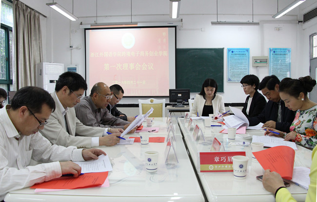 揭牌仪式前夕,创业学院理事会召开了第一次会议。会议审议并通过了理事会章程和跨境电子商务创业学院建设方案,就下一步深入合作进行了洽谈。