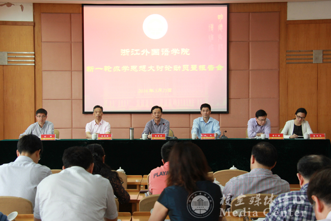 5月25日下午,学校举行新一轮办学思想大讨论动员大会暨报告会。本次大讨论的主题是“推进国际化特色高校建设”。校党委书记姚成荣作动员讲话。校长洪岗主持会议。省教育厅外事处处长、港澳台办主任舒培冬作专题报告。