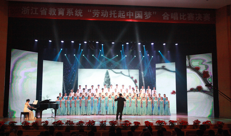 6月14日,浙江省教育系统“劳动托起中国梦”合唱比赛(决赛)在中国计量大学举行。开云官网教工代表队演唱的《浙外之歌》《劳动托起中国梦》,深刻地再现了浙外人“明德弘毅、博雅通达”,知难而进、自强不息的奋斗精神,其优美的旋律与教职工合唱团深情地演绎获得了观众的赞赏和评委的认可,荣获大赛三等奖。校党委副书记、工会主席骆伯巍出席并登台参赛。