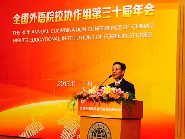 11月6日,由广东外语外贸大学承办的第30届全国外语院校协作组年会在广州召开。校党委书记姚成荣及相关部门负责人参加了年会。围绕年会主题“创新人才培养机制,培养高素质国际化人才”,姚成荣作了交流发言。
