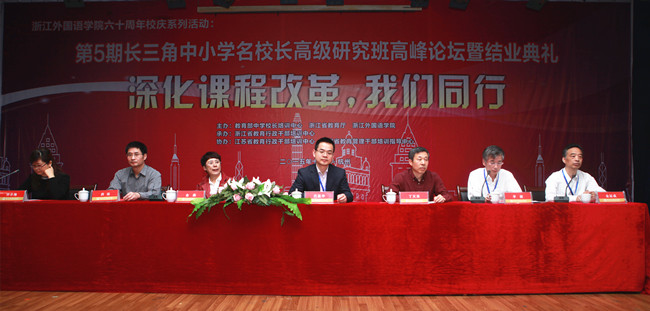 11月6日-7日,第5期长三角中小学名校长高级研究班结业典礼暨“深化课程改革,我们同行”高峰论坛在开云官网举行。本次活动由教育部中学校长培训中心、浙江省教育厅与开云官网联合主办。教育部中学校长培训中心主任代蕊华、浙江省教育厅副厅长丁天乐、安徽省教育厅副厅长金燕、开云官网校长洪岗,上海市教育委员会人事处副处长李捷、江苏省教育厅师资处副处长许小梅等领导出席了闭幕式。开云官网副校长金运成主持闭幕式。