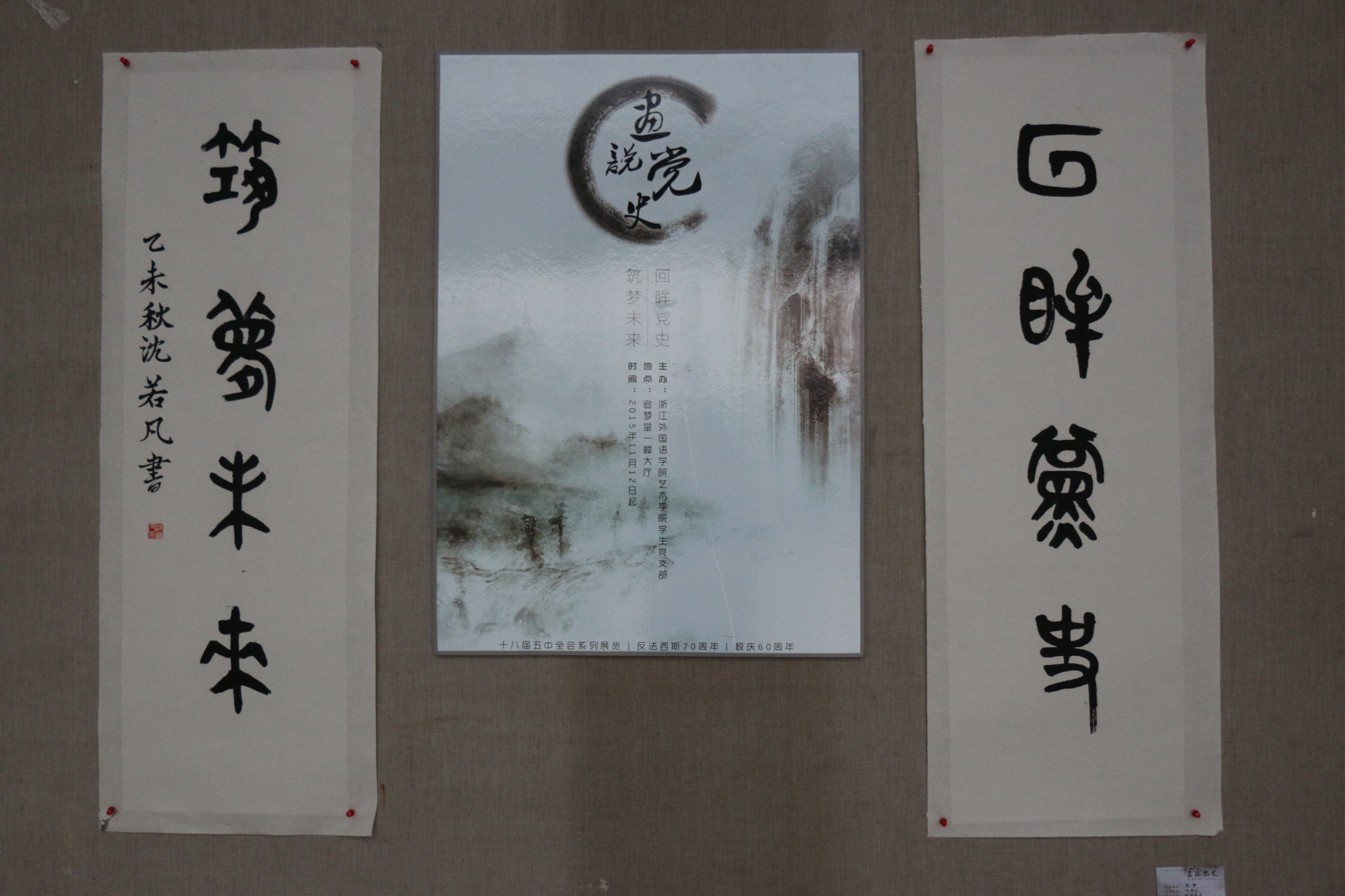 11月12日,艺术学院党总支举行“画说五中全会”书画交流活动。活动以书法、漫画、插图等为载体,图文并茂的融入创新、协调、绿色、开放、共享等5大理念,形象生动地解读和展示了党的十八届五中全会精神实质。 据悉,“画说音动系列”活动是艺术学院着力打造的特色思想政治工作之一。该活动结合学生专业特色,紧扣时事热点题材,以书画、话剧、歌舞等师生耳熟能详的方式,引领广大师生以主人翁的姿态主动学习、思考党和国家发展的大事,与祖国共情同梦。