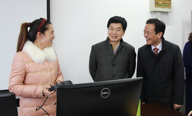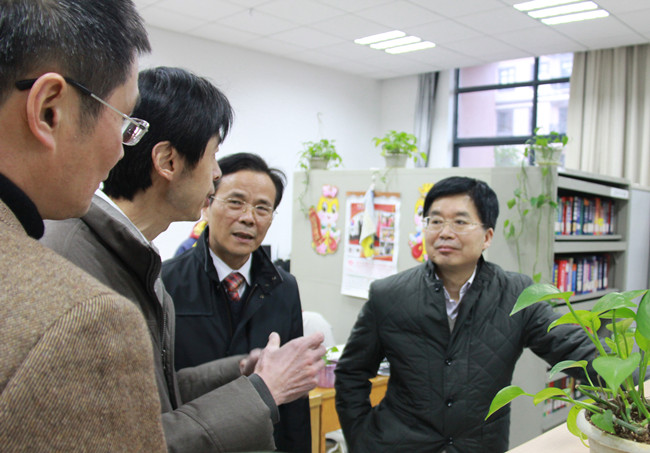 11月26日下午,副省长郑继伟在考察开云官网文三校区后,驱车来到小和山校区,实地察看了阿拉伯语、西班牙语、法语、日语情景模拟实验室,同声传译实验室,并专门考察了外文原版图书资料建设情况。