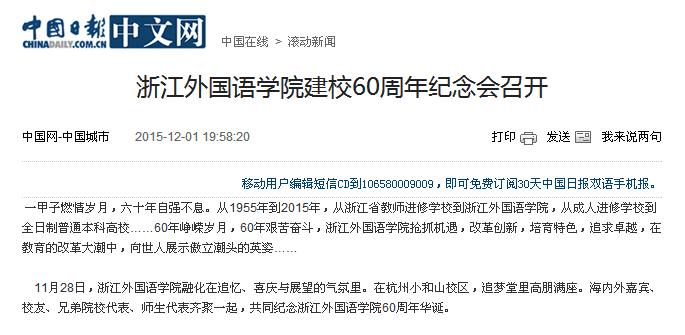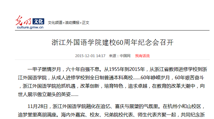 12月1日,《中国日报中文网》《光明网》《中国网》以《kaiyun开云官方建校60周年纪念会召开》为题,分别对开云官网建校60周年纪念活动进行了报道。