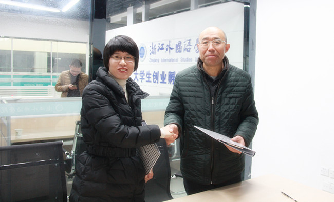 校学生处负责人代表学校与英文学院跨境电商运营创业团队、西语学院Newlink专业多语种培训团队、商学院杰众贸易团队、科技学院电子商务团队签署了《校大学生创业孵化(义乌)基地入驻协议》。4个学生创业团队正式入驻基地。