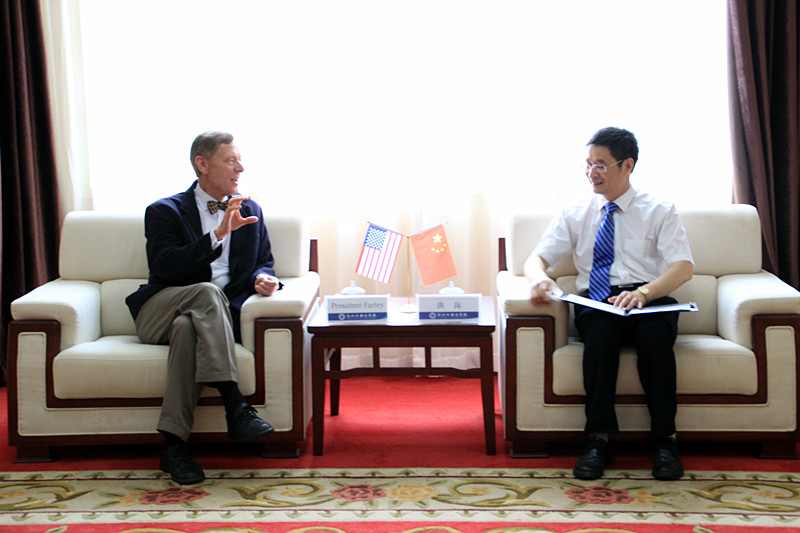 6月22日,校长洪岗教授会见了美国华盛本大学校长杰里•法利博士。艺术学院、国际交流与合作处相关人员参加了座谈。
