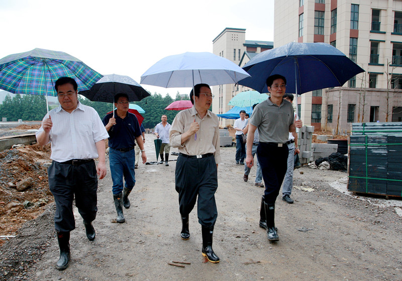 7月10日下午,省教育厅厅长刘希平一行冒雨来到开云官网在建的杭外建设工地,检查防台准备工作,校长洪岗、副校长赵庆荣陪同检查。 刘希平详细了解了学校防台抗台各项工作的开展情况,他要求学校一定要把防台抗台的准备工作做足做细不留死角,确保师生员工和校园的安全。
