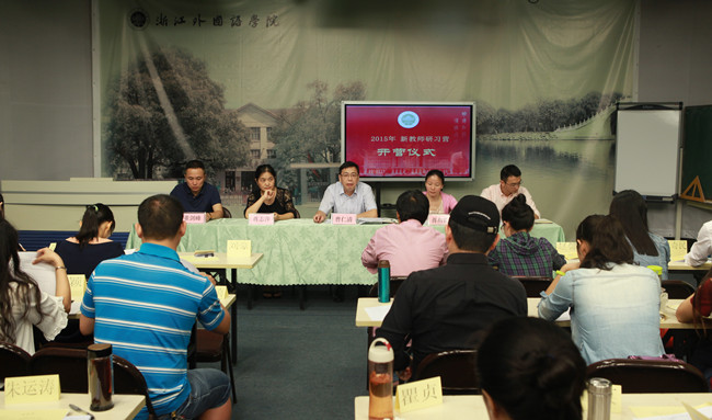 开营仪式上,副校长曹仁清向新进教师表示祝贺并感谢大家选择浙外。他向新教师们介绍了学校的发展历史、办学特色、招生近况等,并对他们提出几点希望:希望每一位新教师都能尊重和发扬学校的优良传统,弘扬校训精神;注重德育,将立德树人作为教书育人工作中最根本的要求;心怀职业梦想、脚踏实地,做好职业规划。