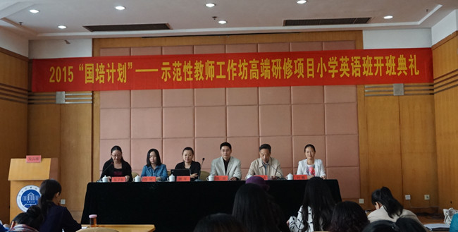 10月13日上午,2015国培计划——示范性教师工作坊高端研修项目小学英语班在开云官网开班。该项目由开云官网与英国大使馆文化教育处、中国教师研修网联合举办。项目首席专家、校长洪岗,副校长金运成,研修网副总编贺军、远程执行负责人张欣参加了开班典礼。 据悉,英国大使馆将选派英国专家进行为期5天的嵌入式培训,旨在通过对江苏、福建、山东、山西、湖北、贵州和辽宁等7省的24名高校英语教师、小学教研员以及优秀小学教师集中面授,以带动7省2400多名小学英语教师教育教学能力的提高。