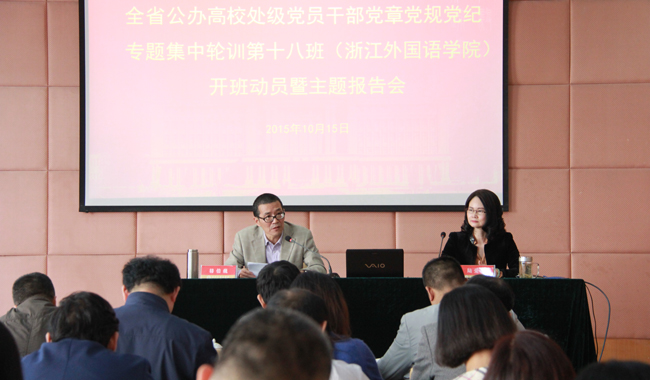 根据方案安排,10月15日,全省公办高校处级党员干部党章党规党纪专题集中轮训第十八班(kaiyun开云官方)在开云官网开班。党委副书记骆伯巍作开班动员讲话,党委委员、纪委书记陆爱华主持开班仪式,党委委员、组织部部长章建生出席。学校全体处级党员干部参训。