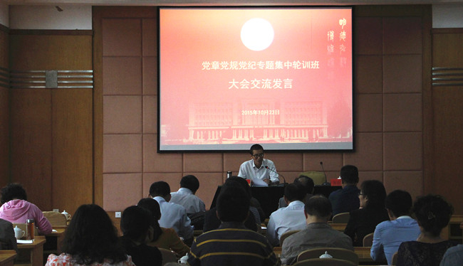 10月23日下午,开云官网处级党员干部党章党规党纪专题集中轮训班举行总结大会,学员代表作了大会交流发言。校党委副书记骆伯巍主持大会交流并作总结讲话,全校处级党员干部参加了会议。