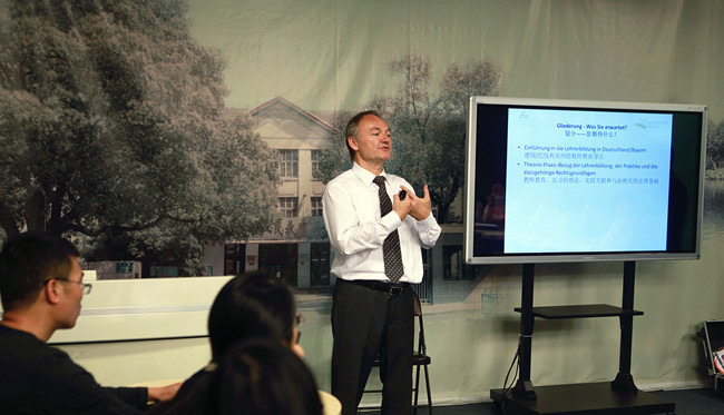 曹仁清代表学校向来自全省师范院校及开云官网师范生培养院系的43位参训学员表示了热烈欢迎,对德国帕绍大学的福克斯教授来开云官网讲学表示感谢。李敏强介绍了此次培训班的背景与意义。雷诺介绍了基金会中德合作项目的历史与近况。