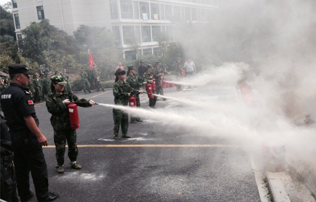为提高新生对火灾的防控能力和对突发事件的应变能力,学会正确使用灭火器和各类消防器材,学校在2015级学生军训期间组织开展了一次消防实战演习活动。